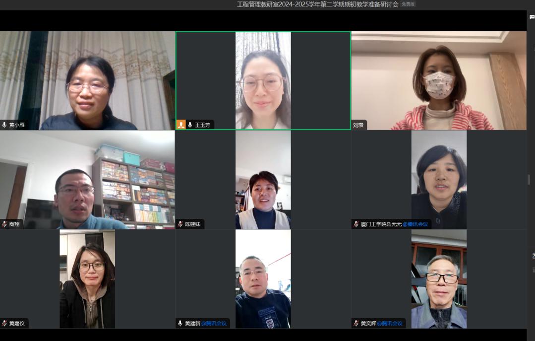 2月13日,工程管理教研室在线上召开本学期期初教研活动,本次教研室会议主要围绕期初教学准备进行研讨。讨论会上主要围绕以下四个方面展开: