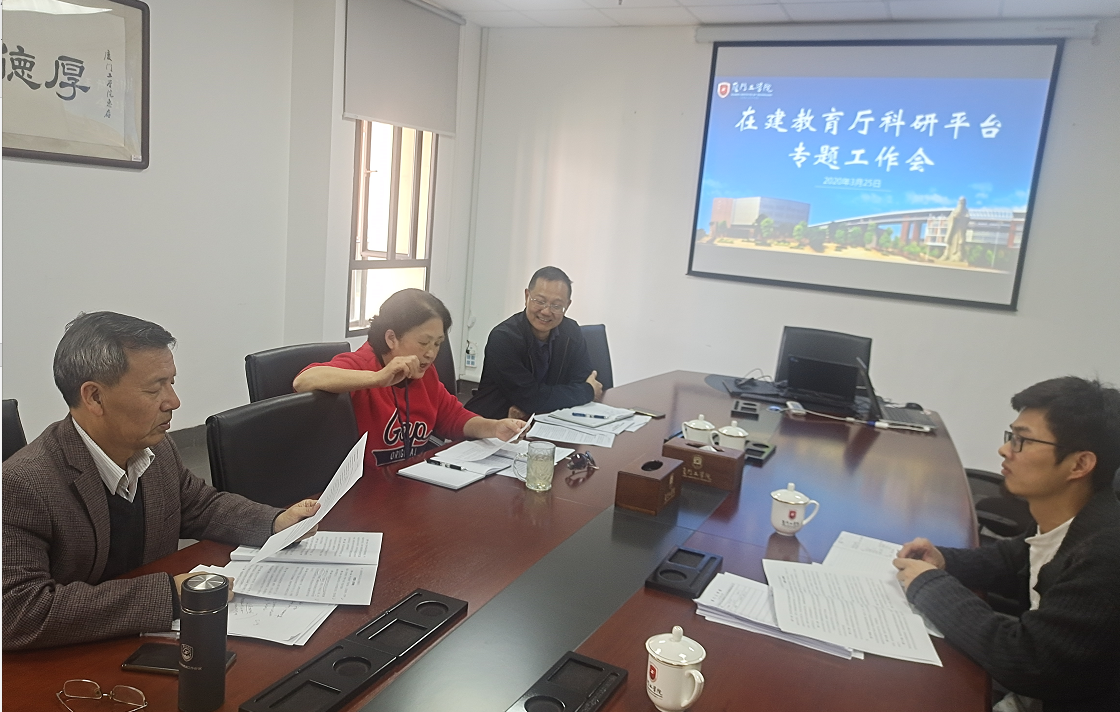 为推进我校“闽南石雕艺术与产业发展研究中心”高校人文社科研究基地和“柔性制造装备集成福建省高校重点实验室”建设工作,2021年3月25日上午,我校在政务大厦五楼会议室召开了在建教育厅科研平台专题工作会。副校长李咏梅、副校长兼人文社科基地主任苏涵出席会议,机械工程与制造学院学术院长张希农教授、学术副院长兼重点实验室主任贾继德教授、艺术和传媒学院学术副院长孔月光副教授和在建科研平台学术和管理骨干成员参加了会议,会议由科研与学科处处长陈宏平教授主持。