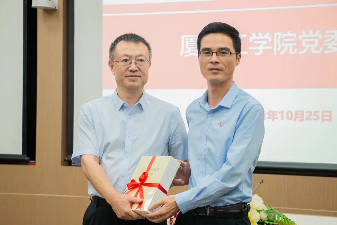 李文副校长代表学校党委向研究中心赠送有关学习资料。