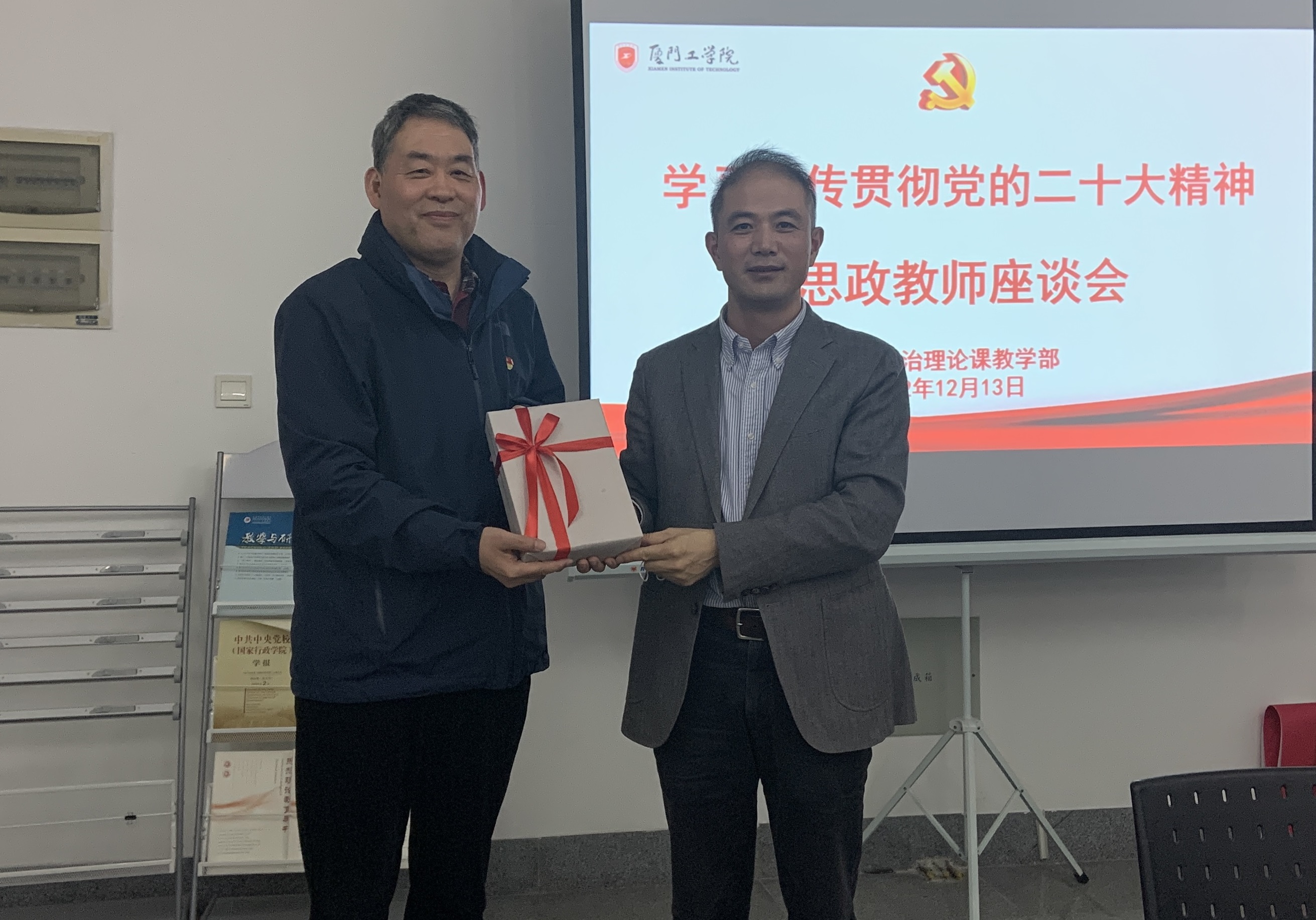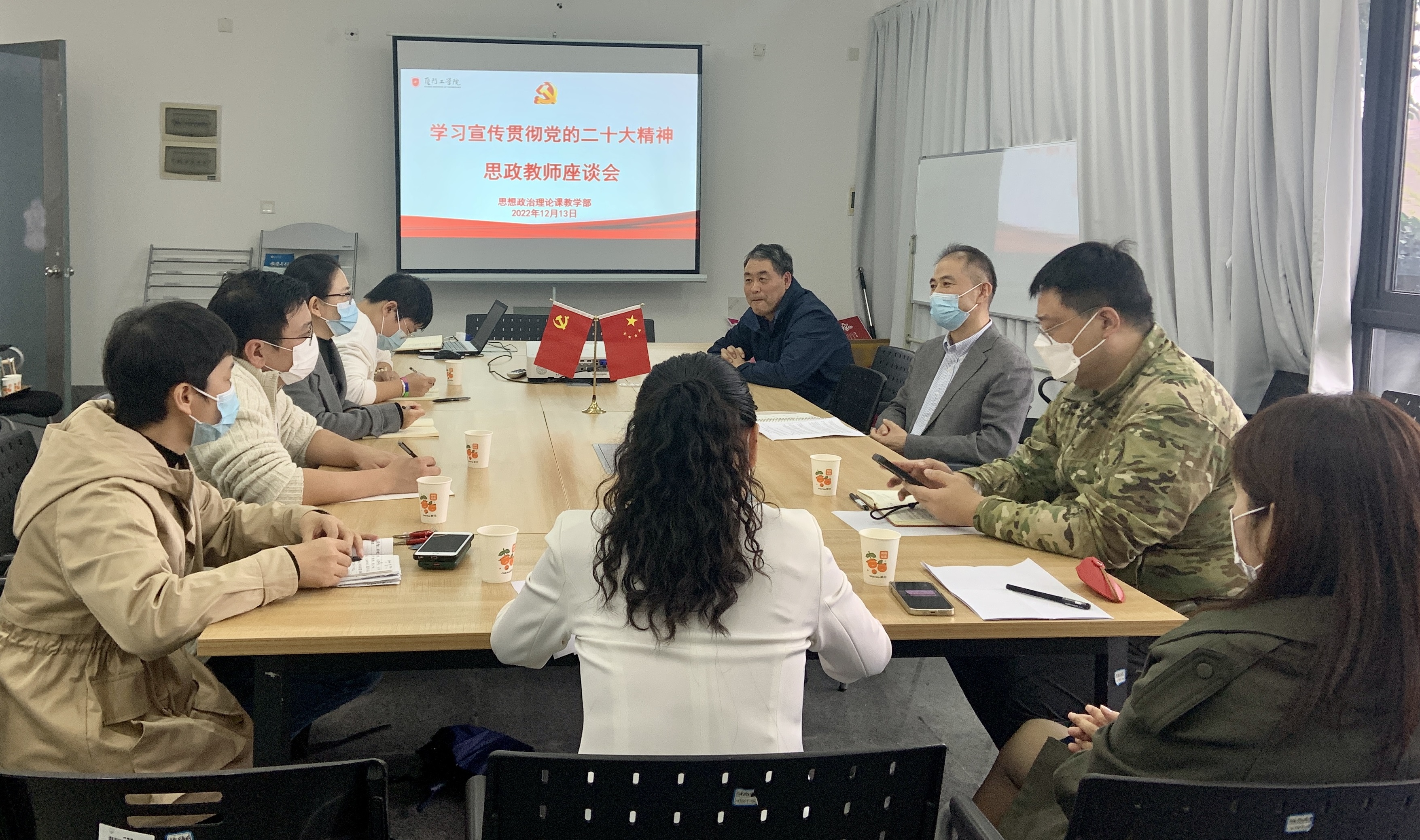 为深入学习宣传贯彻党的二十大精神,推动二十大精神“进学校、进课堂、进头脑”,切实发挥思政课在立德树人中的作用,提升思政课教学水平和教学质量,12月13日下午,思想政治理论课教学部在正心大厦622会议室举行了座谈会,邀请朱瑞元书记出席,同思政部全体教师做交流分享。