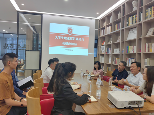 座谈会上,思政部娄红伟主任对调研组一行表示热烈欢迎,感谢长期以来对学校大学生理论宣讲工作的支持与关注。思政部办公室主任纪凤媚老师总结汇报了我校大学生理论宣讲轻骑兵的基本情况和取得的成绩。一年来,思政部先后组织大学生轻骑兵进课堂、进社区、进企业、进网络开展理论宣讲活动,以实际行动学习宣传贯彻党的二十大精神,践行社会主义核心价值观,展示了我校大学生良好精神面貌,激发了全社会更多的正能量、好声音,取得了良好的社会效果。