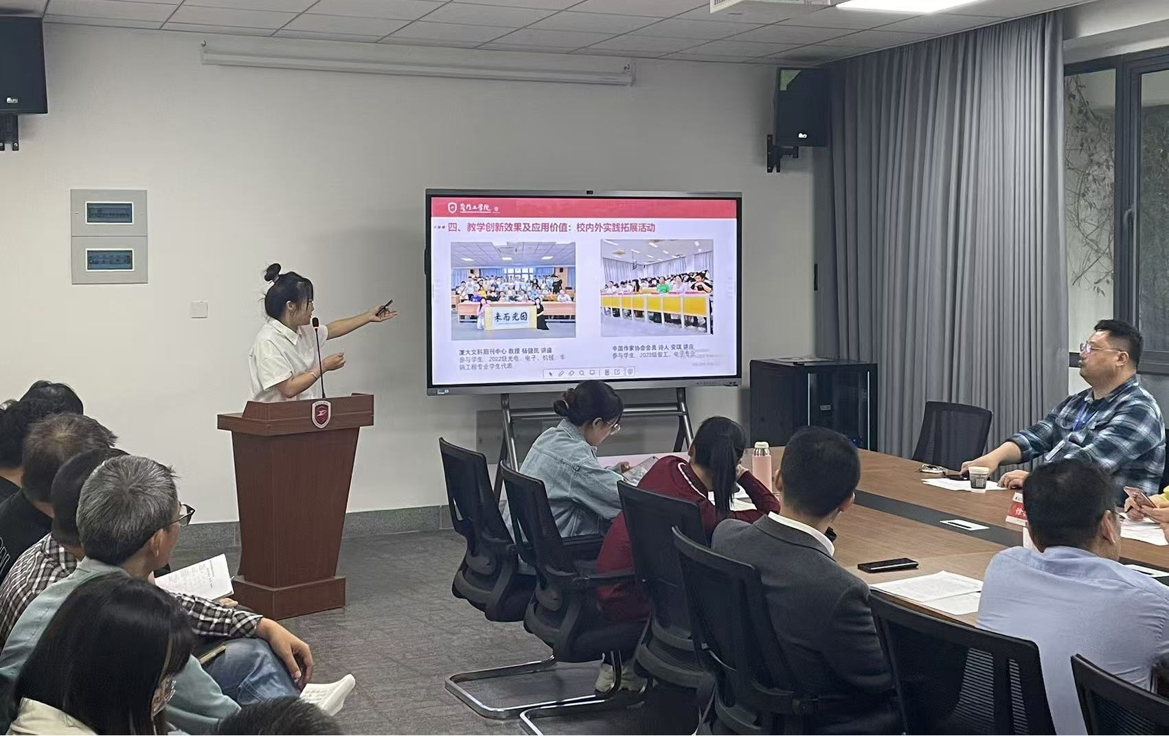 为深入学习贯彻习近平总书记关于教育的重要论述,大力弘扬教育家精神,落实立德树人根本任务,提升学校教师教书育人能力和人才自主培养质量,推动信息技术与教育教学融合创新发展,根据《关于举办第五届厦门工学院教师教学创新大赛的通知》(教务〔2024〕21号)文件要求,结合思政课程教学改革实际情况,思想政治理论课教学部决定举办教师教学创新大赛,比赛分为现场展示和材料评审两个环节。11月19日下午,现场展示环节在正心大厦622会议室举行,课部副主任邵晴担任主持,课部全体教师作为观众评审参加,并特别邀请厦门大学马克思主义学院徐雅芬教授作为专家评审进行打分与点评。