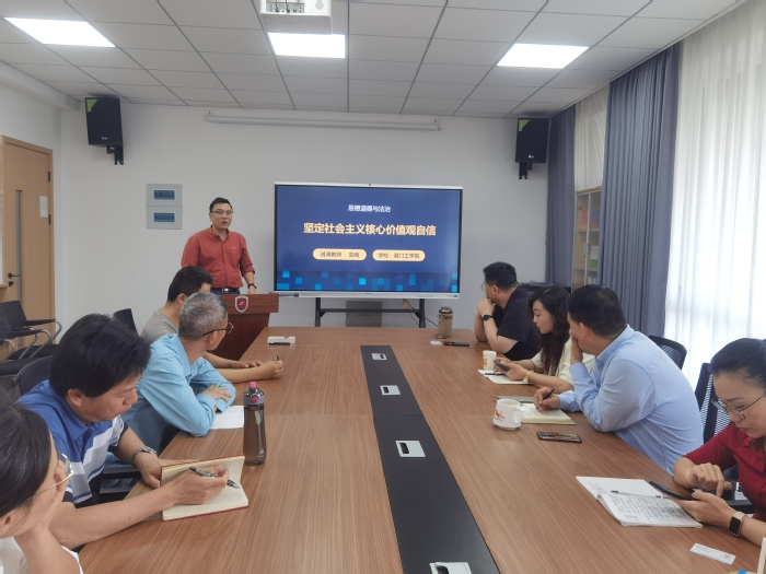 为深化思政课程改革创新,提升课堂教学实效,4月29日下午,思想政治理论课教学部在正心622举办“坚定社会主义核心价值观自信”主题磨课研讨活动。活动由思政部娄红伟主任主持,雷雨老师主讲,课部教学督导工作小组全体成员、各课程组主任参与研讨,通过“说课展示+集体评课”形式,聚焦教学设计优化与育人目标落实,推动思政课教学提质增效。