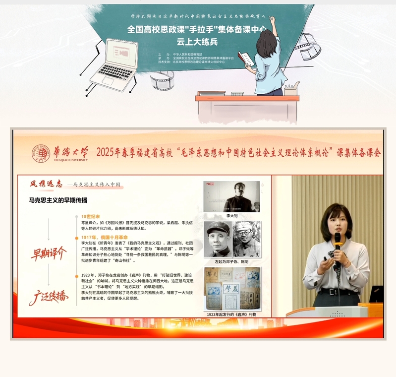 近日,福建省高校思政课教师“思想道德与法治”(简称“德法”)课程与“毛泽东思想和中国特色社会主义理论体系概论”(简称“毛概”)课程集体备课会,分别于福州大学和华侨大学圆满落幕。两场集备会汇聚省内多所高校课程骨干教师,通过磨课研讨、教学展示、专家指导、实践考察等核心环节,有机融合理论深度、教学创新与历史传承,为思政教育注入鲜活力量。我部雷雨老师参与“德法”集体备课会并进行说课展示,安妮老师参加“毛概”集体备课会并开展教学展示,充分彰显我部思政课教师饱满的授课状态与优秀的教学风采。
