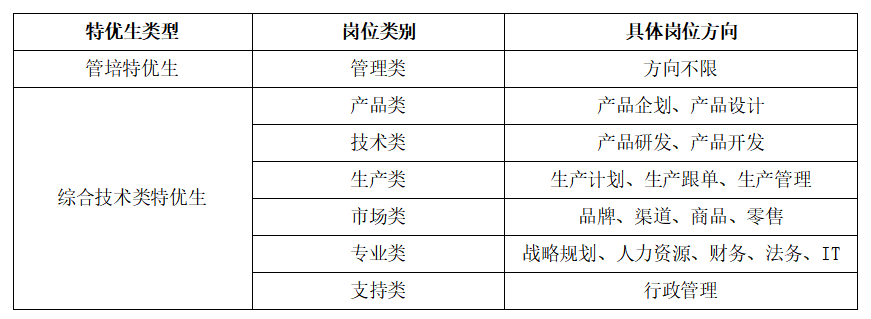 为更好的储备全球性管理人才,特步集团针对2022届校园招聘做了新的调整,新增管培生岗位招聘。同时集团将针对不同的岗位类别匹配不同的培养方案。