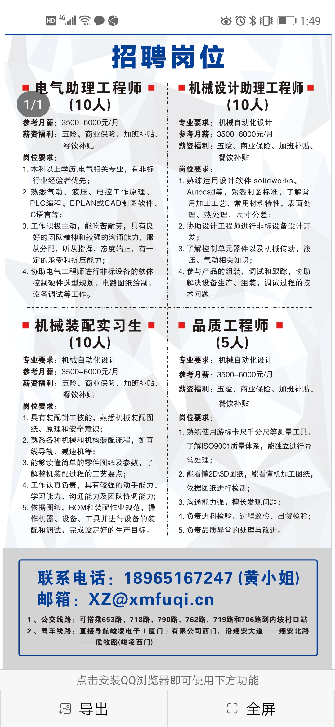 校友招聘|厦门蚨祺自动化设备有限公司招聘