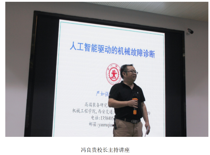 2020年10月27日下午西安交通大学教授、博士生导师、高端装备研究院国际机械中心主任严如强教授在国学大讲堂为机械与制造工程学院及全校感兴趣的教师和本科生做了一场“人工智能驱动的机械故障诊断”的学术讲座,讲座后进行了教研与科研研讨。学术讲座由冯良贵副校长亲自主持,张希农院长、贾继德副院长、陈霄教授、孟继儒教授等师生列席了讲座。