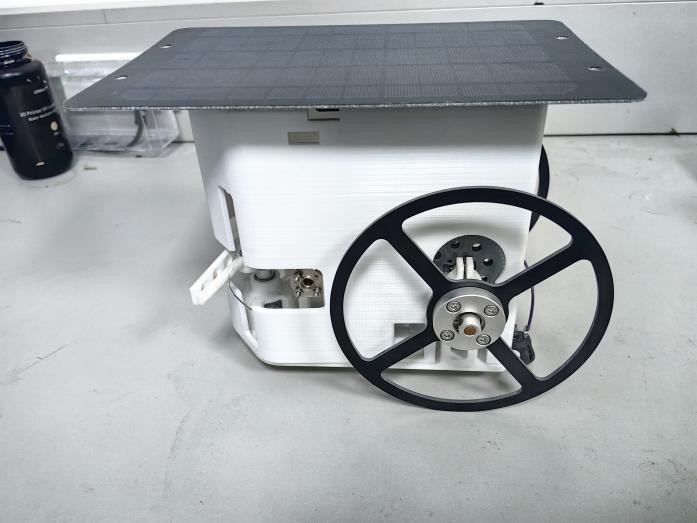 作品简介:2023年全国大学生工程实践能力大赛福建省赛三等奖。太阳能板充电锂电池或超级电容,电能经稳压电路驱动电机带动小车行走,转向机构由凸轮机构及机械传动机构控制转向,使小车自动按红军长征线路行走。