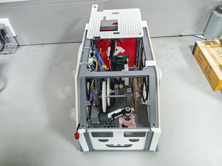 作品简介:2024年全国大学生工程实践能力大赛福建省赛三等奖。太阳能板充电锂电池或超级电容,电能经稳压电路驱动电机带动小车行走,转向机构由凸轮机构及机械传动机构控制转向,使小车自动按红军长征线路行走。