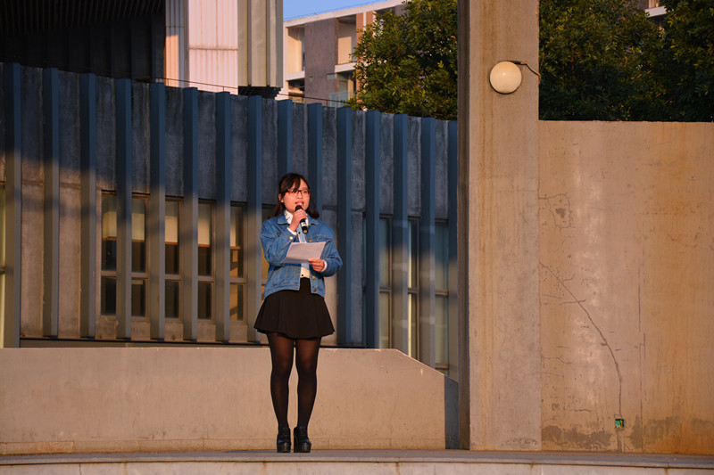升旗仪式结束后,15级广告1班的张莹莹同学发表国旗下讲话,她以激昂的陈词倡导大家在日常的生活中学习雷锋,发扬雷锋精神,付诸行动。