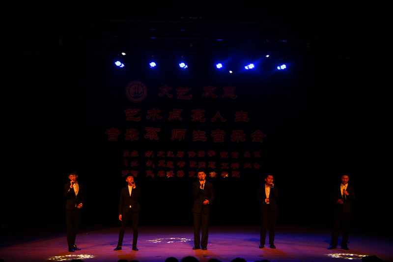 图为李浩、胡延安、苏小杰、刘晓鑫、陈国丁同学带来的男声组合《you raise me up 》