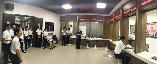 实训室高度仿真的银行柜面场景让学员们惊叹不已,有学员表示:当真正坐在柜台里的感受与平常完全不一样,会有些紧张,同时又会有一种服务意识,而且实训室里背景墙的“微笑服务”理念特别的应景。此次礼仪培训的讲师在课后谈到:与银行柜面如此相近的训练场所还是第一次见到,在这样仿真度极高的特定场景下开展礼仪训练、实操等,能够让学员更容易地掌握学习要点,达到很好的培训效果。