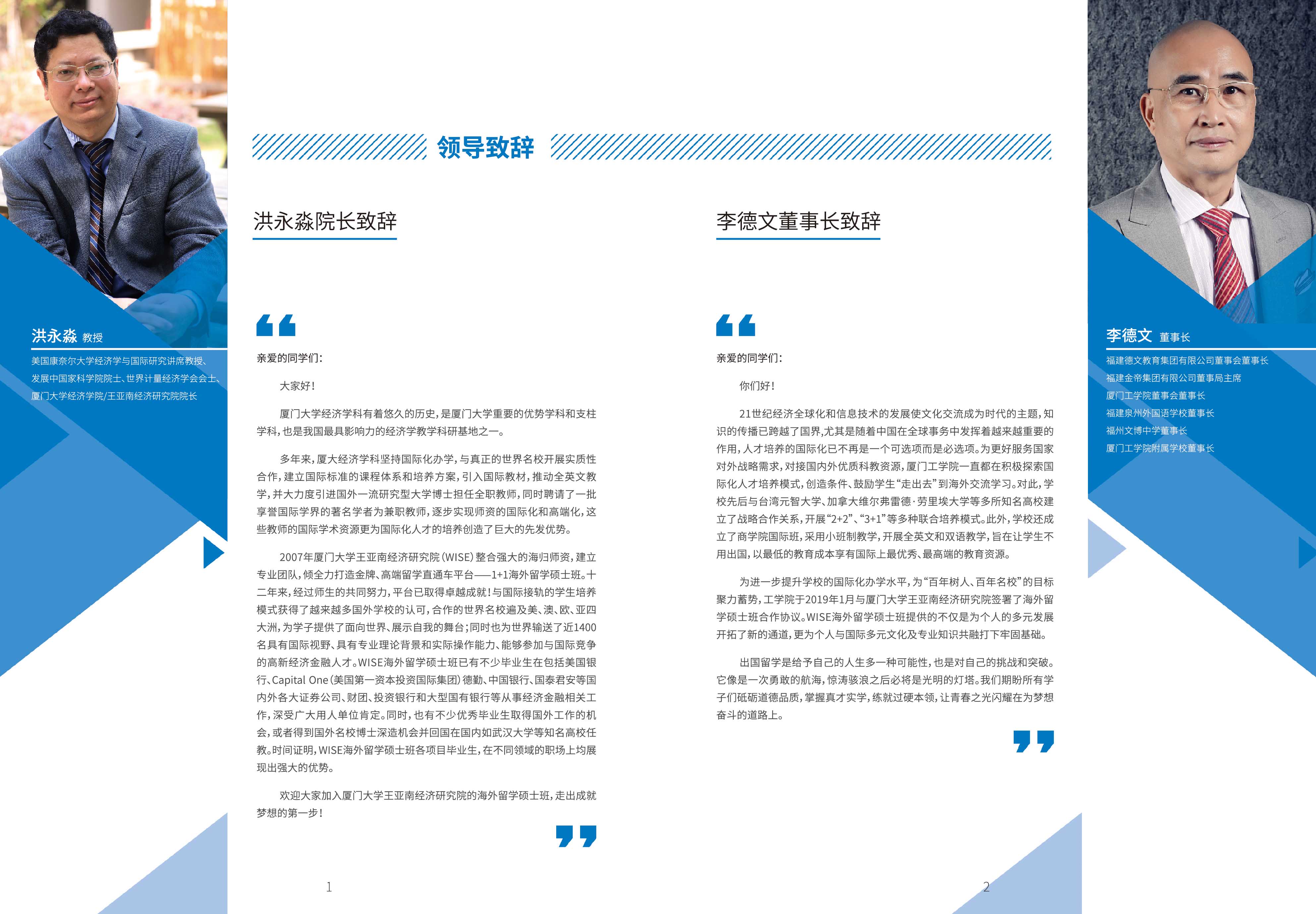 厦门大学王亚南经济研究院&厦门工学院——1+1海外留学硕士班