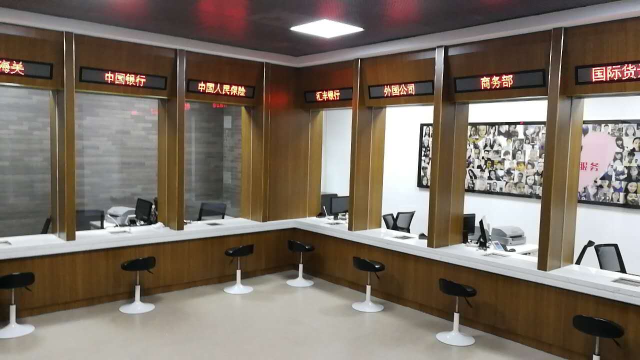 综合业务仿真实训室面积65平米,设有8个业务办理窗口,作为辅助商务综合实训室和跨专业综合实训室的8个外围机构。同时也是现代商业银行仿真教学的实训场所,配有取号机、电脑、叫号器、票据打印机、存折打印机、刷卡器等实训设备,使学生在仿真的环境中达到掌握银行核心业务及外围业务的基本技能,使之毕业后能快速适应工作要求。