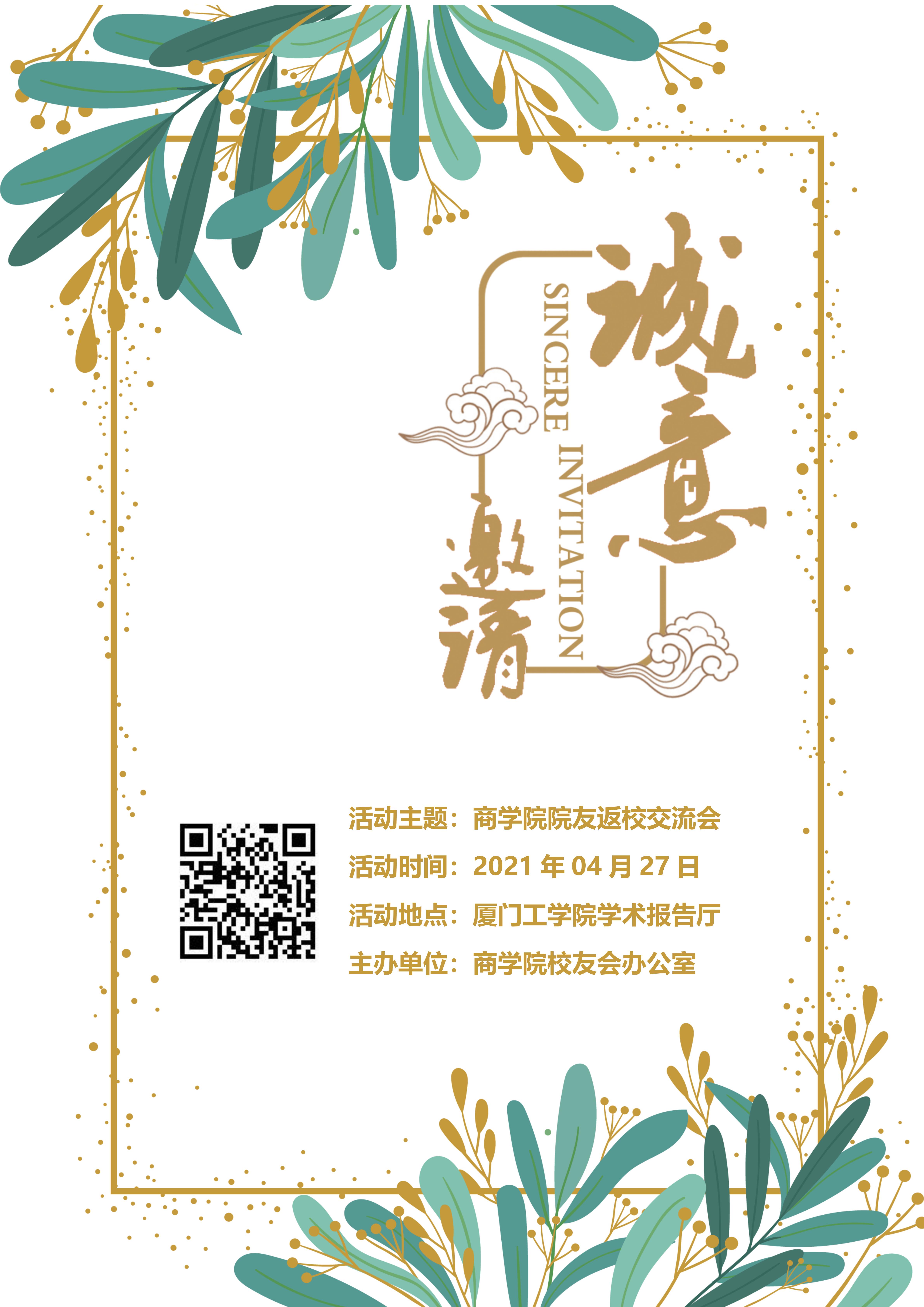 叮~厦门工学院商学院校友看过来,这里有一份返校邀请函,请您查收~