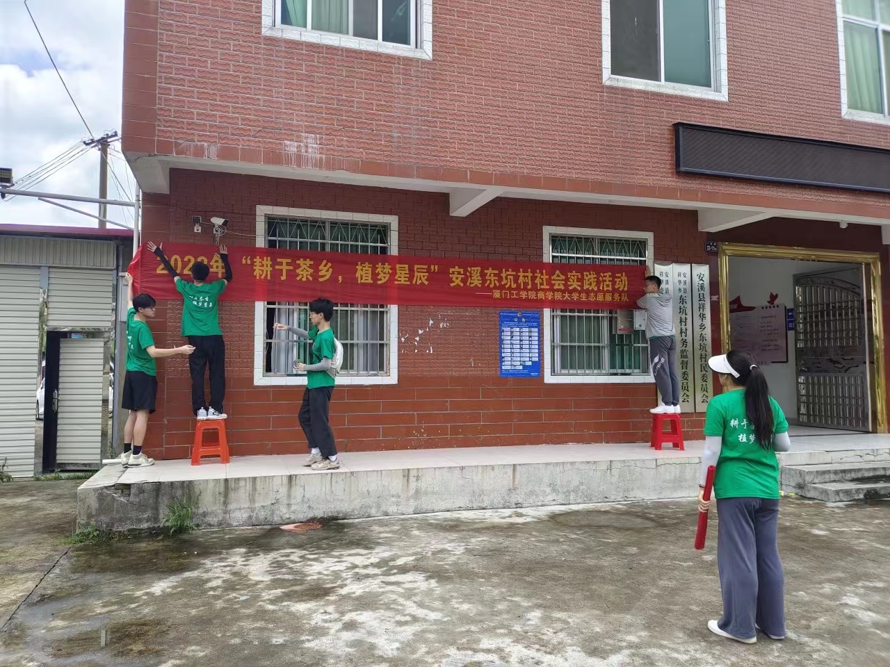 “耕于茶乡,植梦星辰”是我们这次暑期社会实践活动的口号,以此为内容做了几条横幅,在村部的门口进行粘挂。
