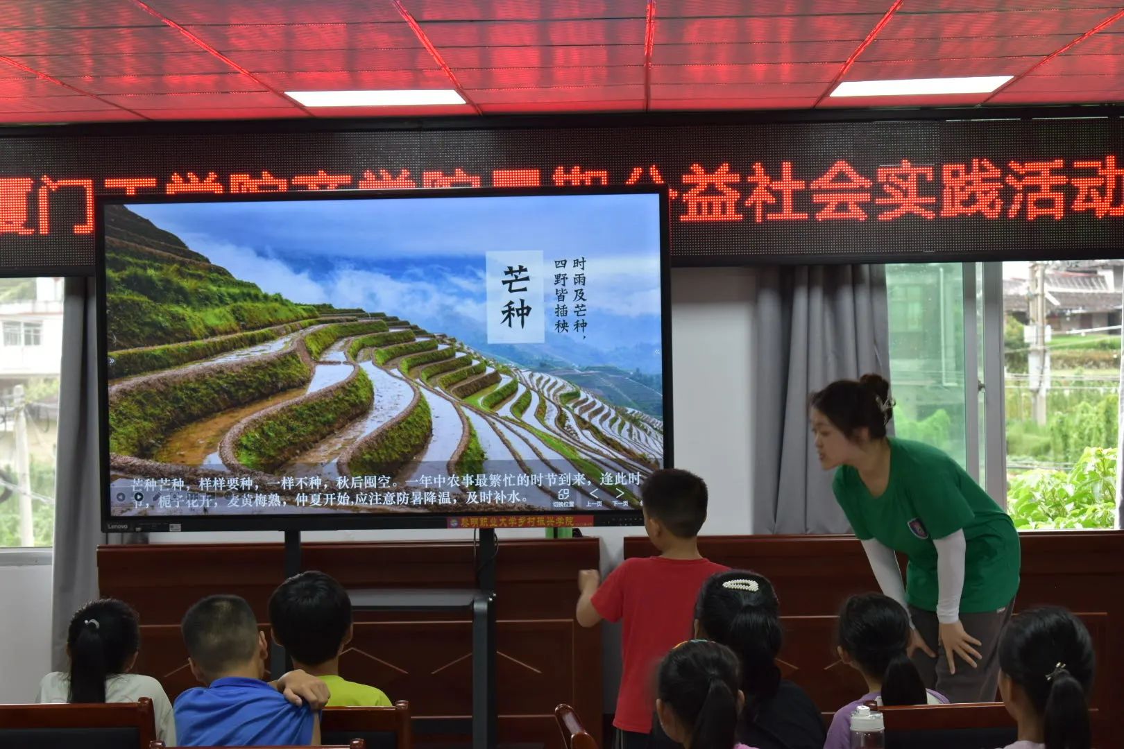 二十四节气蕴含着悠久的文化内涵和历史积淀,作为中华民族悠久历史文化的重要组成部分,今天由厦门工学院商学院大学生志愿服务队成员王梦倩主讲的课堂带孩子们去深入了解古老浪漫、富有内涵的节气文化。这一节课为小朋友们设计了《二十四节气》主题课堂,通过知识讲解,回答问题,游戏互动去深入了解从上古时代留传下来的悠久历史文化宝藏。