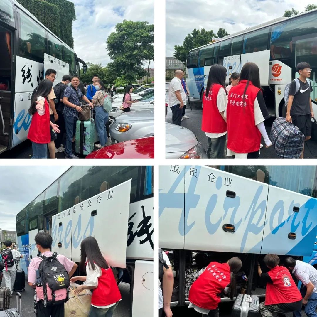新生如约而至,将在厦门工学院开启他们全新的生活学习。商学院学生第三党支部响应"为人民服务"宗旨自发在体育馆下车处接引新生。