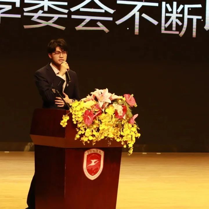 徐佳鑫身着西装,站在聚光灯下,用铿锵有力的语气开始了这场发布会讲话。他先讲述了进入友容学委会的故事,对自己一路走来和成长的经历进行了分析,并且不断抛出思考性问题以设问的形式让大家体验到友容学委会这个组织带给他的经验、锻炼以及领悟到的种种力量与精神。