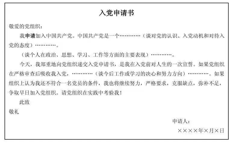 5. 入党申请书应由申请入党的同志亲笔书写,由申请人本人亲自交给党组织。