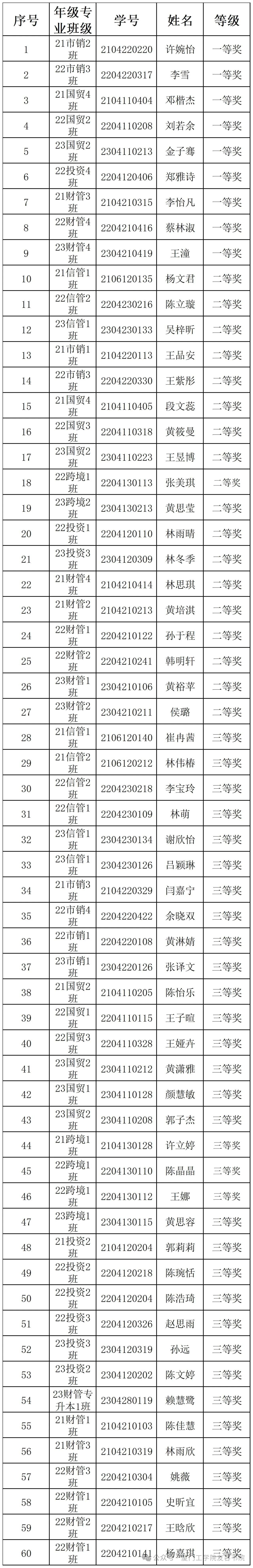 厦门工学院商学院 2023-2024学年厦门工学院奖学金拟推荐名单公示