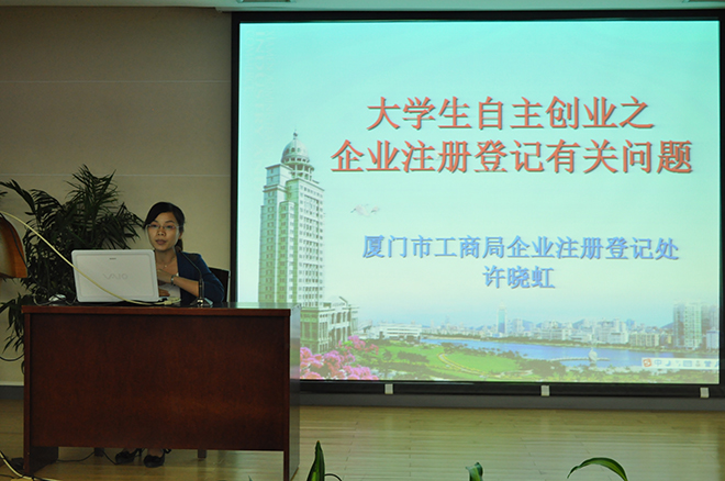 最后许晓红女士为我们讲解大学生自主创业之企业注册登记有关问题。许女士建议大学生们要去了解和关注厦门对大学生创业的相关优惠政策,并留下了她的联系方式方便日后与学生们沟通进一步了解注册登记的相关内容。现场互动、踊跃提问,大学生们发出心中的疑问,许女生耐心地解答让处于困惑的大学生们豁然开朗。