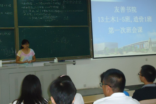 (友善新闻中心图文/陈妹)新学年,新气象,新同学,给友善书院增添了生机与活力,更让友善书院整体面貌焕然一新。9月15日上午,友善书院在厚德大厦413召开13级土木1-5班,造价1班第一次班会课。