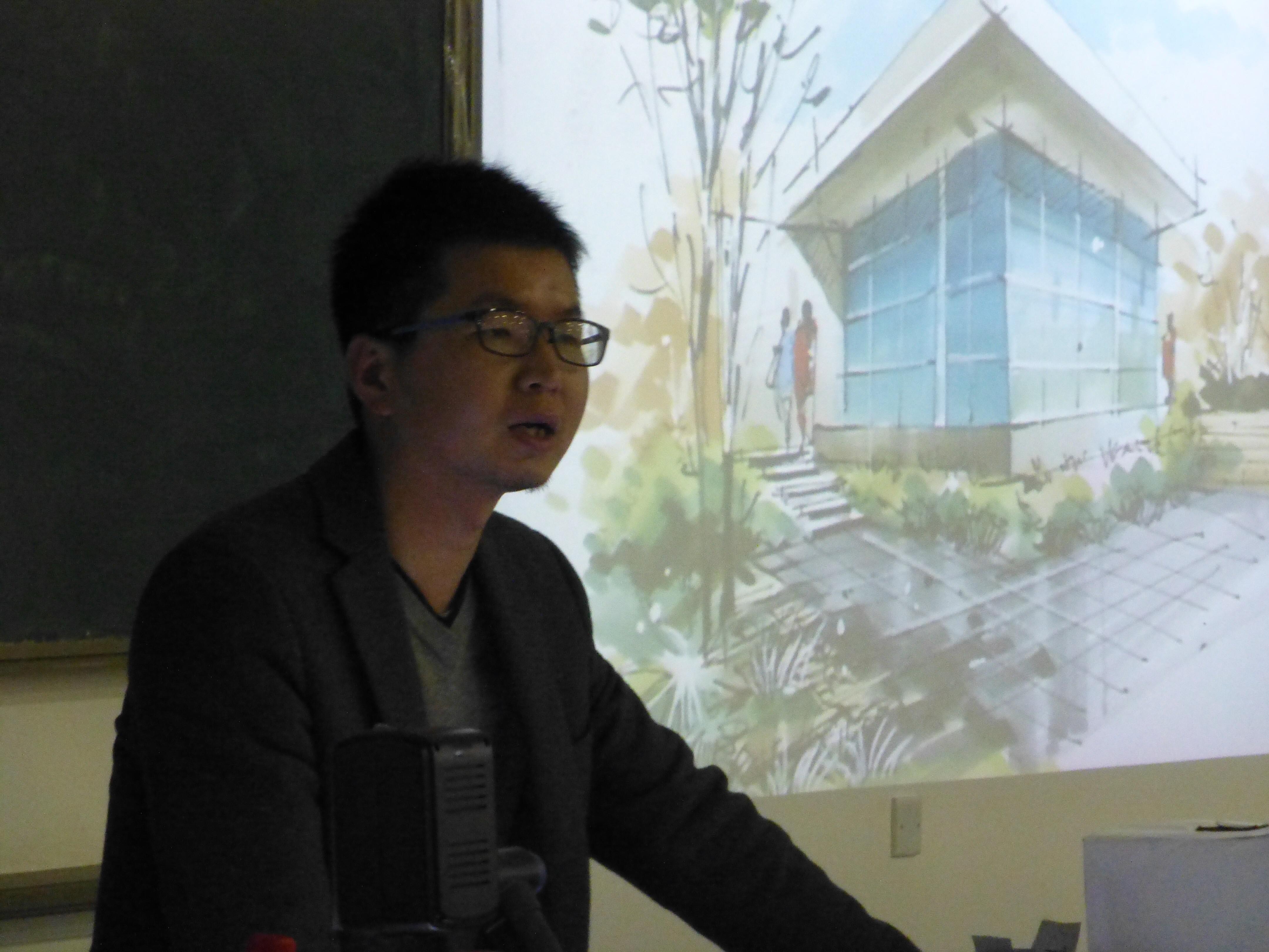 此次讲座邀请叶茂乐(现任厦门大学嘉庚学院)、易成海(国际景观园林规划设计协会会员)、何小立(厦门大学研究生)等众多校外友人参加,由建筑系周艺川老师主持,陈佳挺老师出席。手绘与设计的相碰撞的内容吸引了不少协会会员及建筑系同学前来聆听。