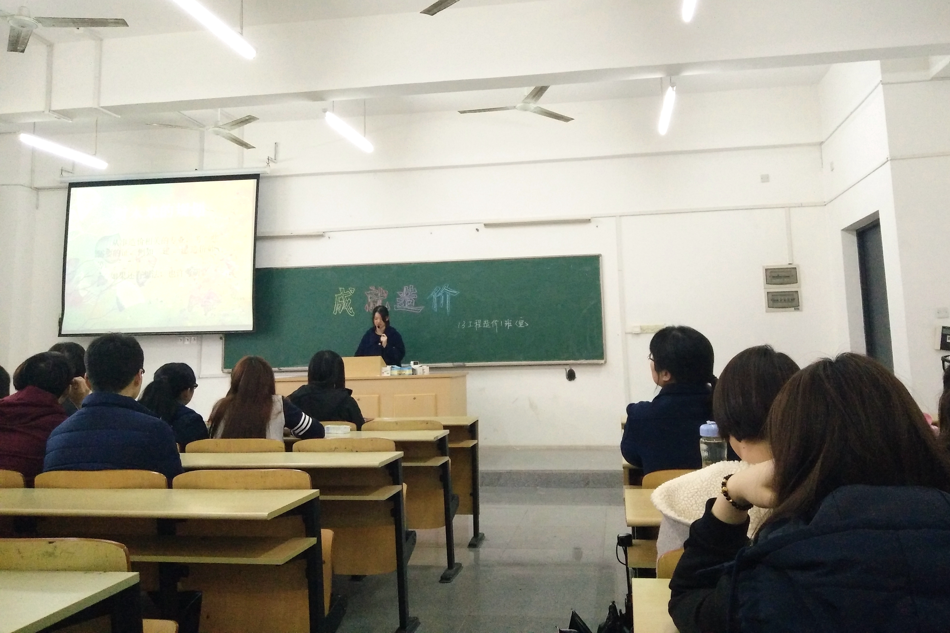 3月10日下午两点半,会议在厚德203教室正式开始。班会由13级造价一班班主任兼学业导师黄小雁主持。班会开始前,小雁老师先就过去一学期造价一班的生活学习状况及期末成绩情况作出了总结,接着由班级各个同学各自制作ppt讲述以自己当初为什么要选择工程造价这个专业,现在的自己应该如何学习,关于现在以及未来的生活的想法展开演讲。为了缓和同学们上台的紧张感,小雁老师半程插句逗趣现场气氛十分融洽,师生交流互动,同学们各抒己见,有的讲述自己因为家庭原因选择了造价这个行业,有的则感慨抱怨刚来大学时朝气蓬勃,意气风发到现在懒惰成性。