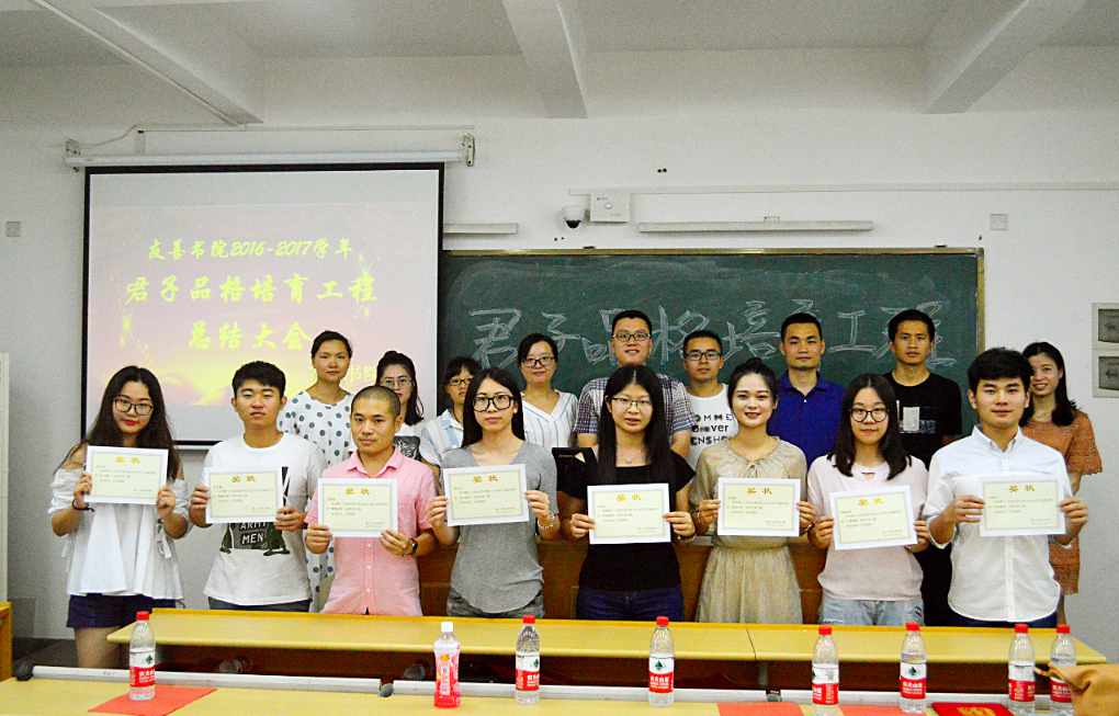 2017年6月22日三点,我院于正心307举行了友善书院君子培育工程总结汇报大会。出席本次活动的嘉宾有学工处处长助理、友善书院院务主任雷雨,书院导师代表林玉梅、陈小琴,班主任代表王玉芳,以及书院全体思政辅导员。