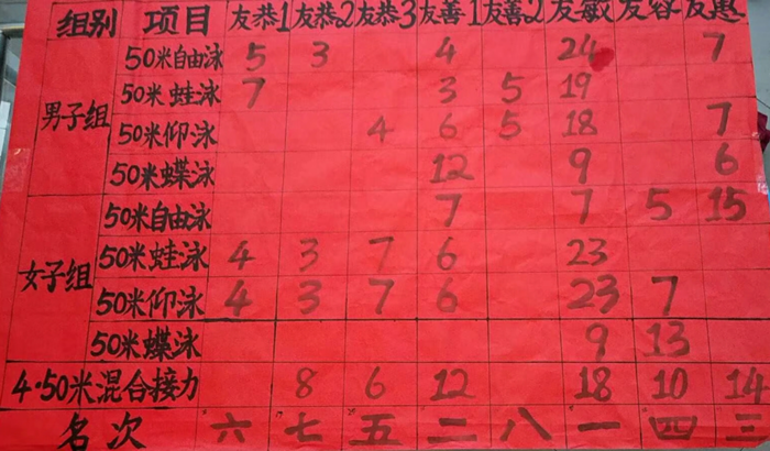 一声枪鸣,比赛开始了,跳板上的运动员们纵身一跃,如离弦的箭,在水面上挥动着结实的手臂,碧波掀起,千层浪花下是他们矫健的身姿,友善学子们奋力着以最快的速度在赛道上遨游。最终,友善1队以总分排名第二的好成绩夺得亚军!