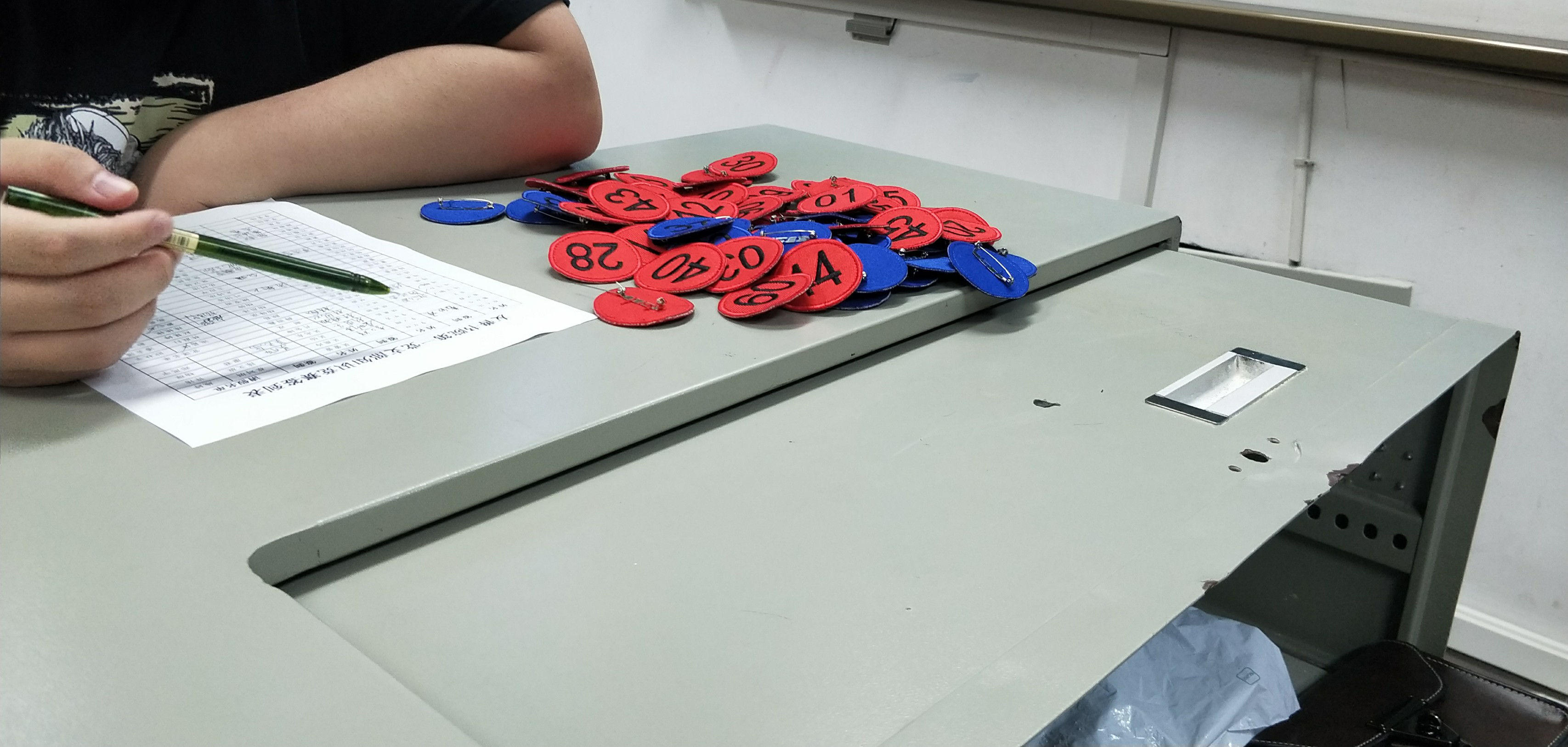 活动分为三个回合,随机取号将所有的参赛选手分为红蓝两队,并且每位同学都佩戴一个编号。第一回合为试卷作答,试卷一共30道题,答题时间12分钟,以试卷准确率计分。