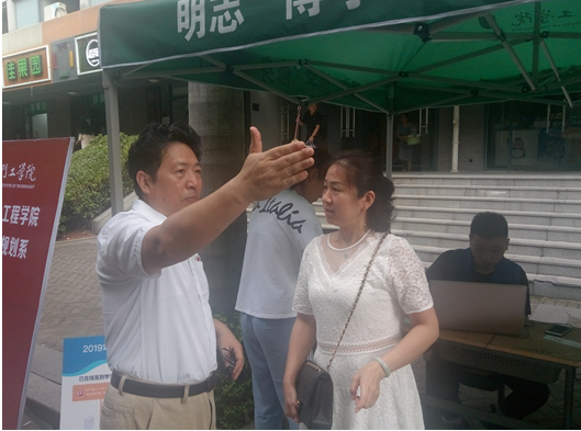 在友善书院院长刘岩民的领导下迎新工作秩序井然,并为在场的家长学生们解疑答惑。友善书院副院长雷雨考察新生宿舍情况,询问新生需求,解疑答惑,及时化解问题。