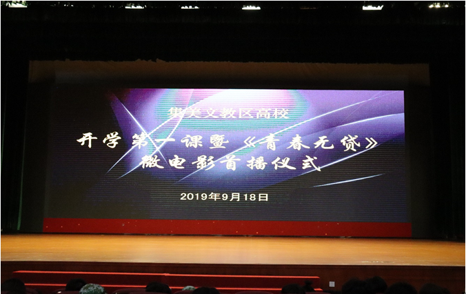 2019年9月18日上午9时,厦门理工学院在艺术大会堂承办了集美文教区高校开学第一课暨《青春无贷》微电影首播仪式。本次活动旨在进一步巩固和提升集美区扫黑除恶专项斗争工作成效,落实集美文教区高校远离校园贷工作相关要求,推动在校生对校园贷说“不”集中宣传活动。本次活动邀请到了集美区人民检察院检察长彭明武、集美区人民检察院副检察长陈清山、集美区人大副主任李梅英、集美文教区管委会副主任鄢荣钗、集美文教区管委会调研员林幼治、集美公安分局副局长李晓彬、厦门理工党委副书记林志成以及集美大学、厦门理工学院、华侨大学、厦门医学院、集美大学诚毅学院、厦门华夏学院、福大厦门工艺美院、开云官网入口app 、厦门软件学院、厦门工商旅游学校、厦门兴才学院、集美工业学校等12所高校的领导代表。