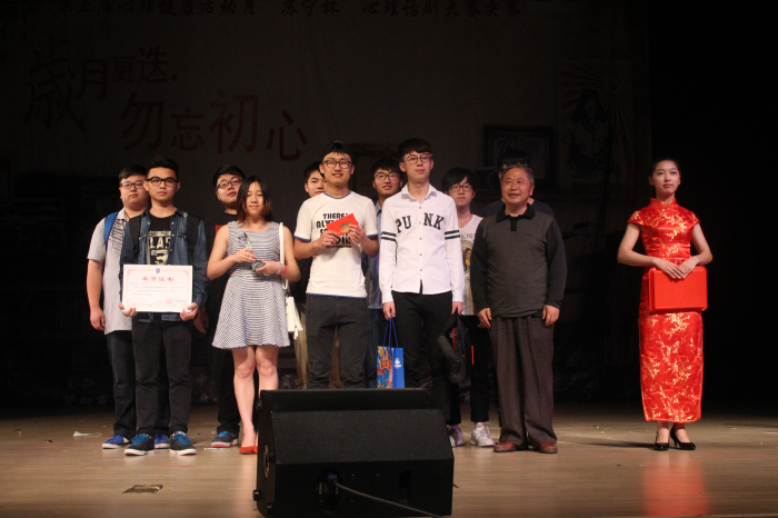 阳光明媚、春风送暖,在这欣欣向荣、美不胜收的季节,我们迎来一年一度的心理健康活动月。2015年4月26日晚7:00,由学工处心理中心、校心委会主办,各书院心委会承办的以“岁月更迭,勿忘初心”为主题的校园心理话剧决赛在我校音乐厅隆重举行。学工处何家汉处长、机械系张佑林主任、友善书院汤伟明主任、友仁书院李文主任、友敏书院黄国良主任以及部分老师、同学们一同观看了比赛。