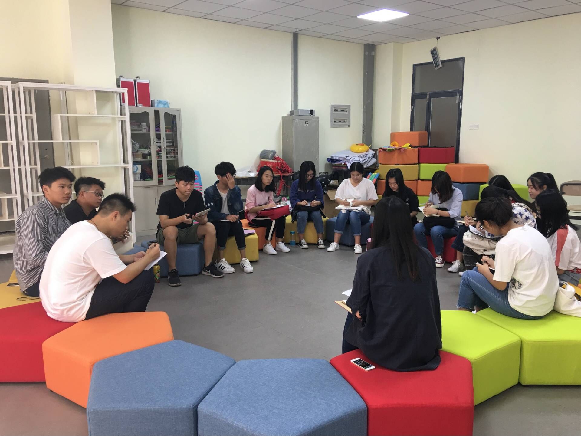 外联部的培训主要由蔡老师指导,首先全体外联干事逐个进行了自我介绍,互相加深了解。随后蔡老师为同学们进行了工作分配并提出了详细要求,具体提出拓展心委活动的内容,把心理沙龙拓展到书院,坚持做好素拓活动。最后,老师和干部们一起分享心得,大家总结出:要把握好压力与动力的转换,相互扶持,并在实践任务中锻炼提升自己。