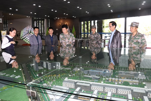我校领导先是引导部队领导在校园进行了参观,在图书馆一楼的沙盘了解学校全景规划图,在报告厅观看了我校的宣传短片,随后还参观了智慧厦工、事务服务中心、友敏书院、体育中心、动感城等地。罗光副政委表示,厦门工学院办得很有特色、很有氛围,有很多先进的技术和独到的经验值得在部队建设和官兵教育中借鉴学习。