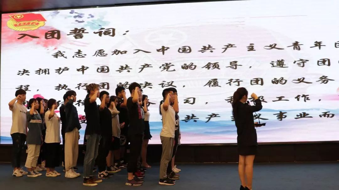 仪式中由校团委组织部部长赵茹茹同学带领新团员在团旗下庄严宣誓。