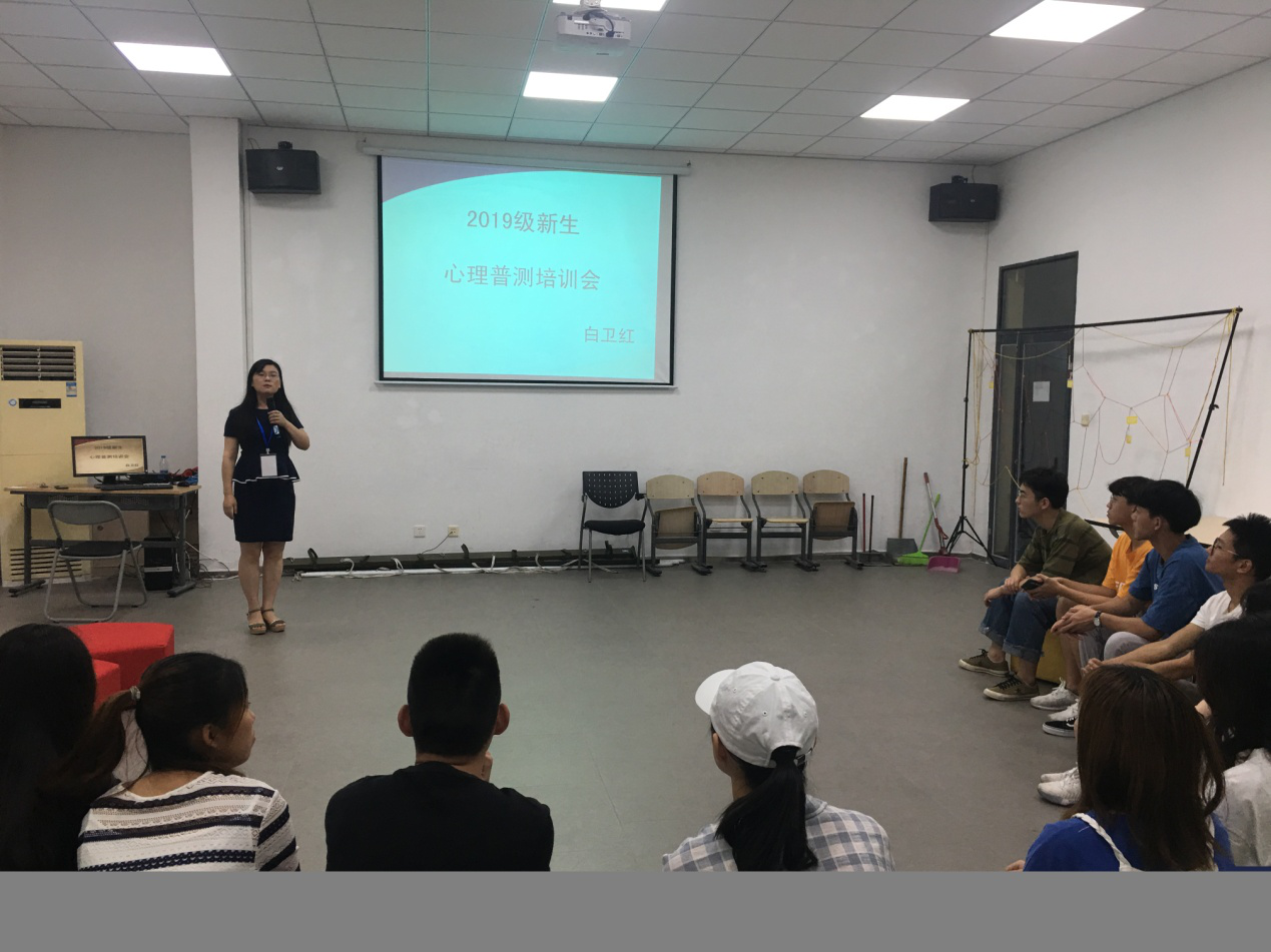 2019年9月20日下午6点30,心理中心白卫红老师在我院学生交流中心309室为校心委学生进行干部培训。此次培训旨在为即将到来的2019级新生心理健康普测做好准备,保证9月24日下午全体新生心理普测的顺利进行。