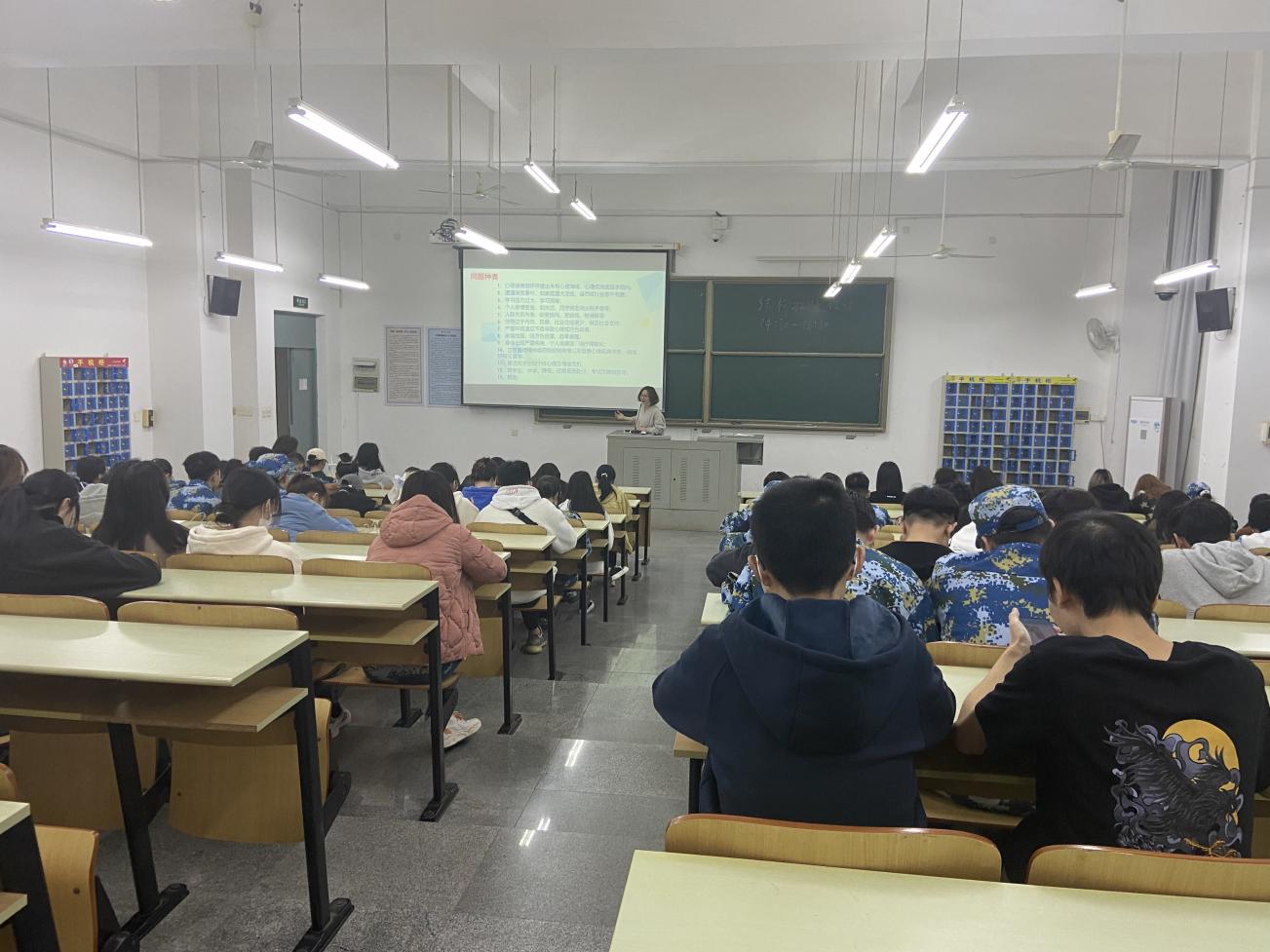 张老师首先从心理委员的职责及其定位展开演讲,让参与此次培训的人员对于自身职责有更深层次的认识。其次,为了使心理委员能更好的发现并排解学生的心理问题,张老师列举了多个种类的心理问题,包括遭遇突发事件、学习压力过大等,甚至是失恋、与同学发生口角之类的小问题也可能对学生的心理健康造成影响。最后,张老师对心理委员的工作内容进行总结,再次重申了心理委员作为心理观察员在集体中的重要性。