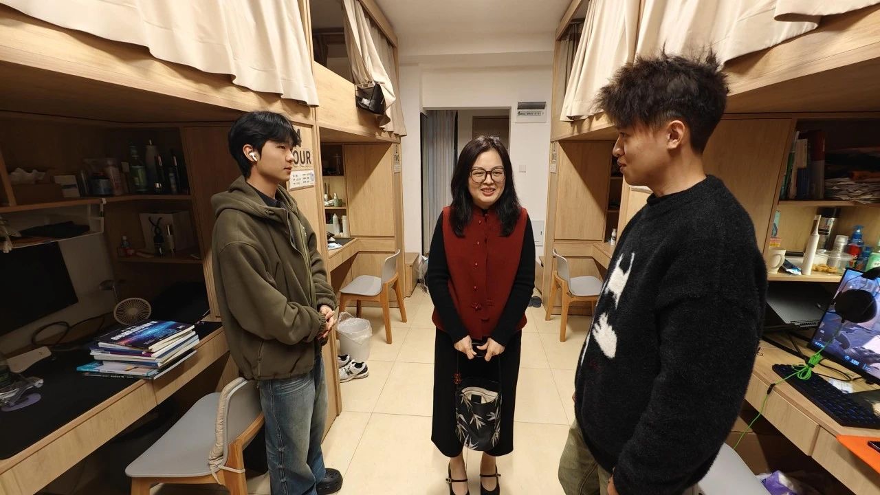 点点关怀暖人心,深深关爱筑梦圆。在走访过程中,领导、老师与同学亲切交谈,关心大家的假期生活、返校适应情况以及新学期的学习规划情况。在一间间宿舍里,师生们围坐在一起,畅所欲言。同学们就新学期规划提出了诸多疑问,老师们结合自身经验,细致地为他们分析问题,并提出解决方法建议,鼓励大家夯实专业基础,勇于探索知识的边界,同时积极参与课外实践,拓展兴趣爱好,丰富大学生活,不断提升完善自己。