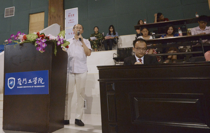 (友敏书院团总支新闻中心 文/苏秋敬、郑木月 图/张滨)又是一年金秋,又是一个开学季,又是一群怀揣着对于未来希望的莘莘学子,踏上了属于自己的寻梦之旅。为了让2013级新生对自己所选择的专业有更进一步的了解,我院商学系于9月17日下午在校篮球馆内组织了一场专业介绍暨迎新大会,期以通过此次活动为尚处于迷茫阶段的新生指明前进的方向。出席本次大会的领导嘉宾有厦门工学院院长方亮教授、党委常务副书记及副院长陈克明教授、友敏书院院务主任黄国良老师、商学系各专任教师及全体辅导员。