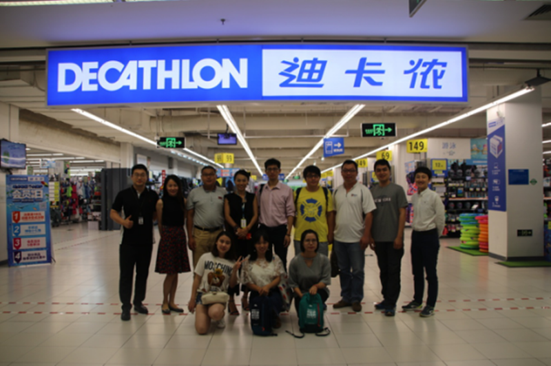 了解完了迪卡侬的品牌历史后,三位老师在本次考察负责人的陪同下,一行人一起乘车前往七星路的迪卡侬零售店。在该零售店,工作人员里向大家介绍及展示了RFID技术。该技术不仅可以快速的对商品进行统计,也可以及时进行补货,防盗,自助结账等。此外,工作人员还给我们展示了迪卡侬的自营品牌的一些产品,如浮潜面罩,2秒自动开帐篷等。