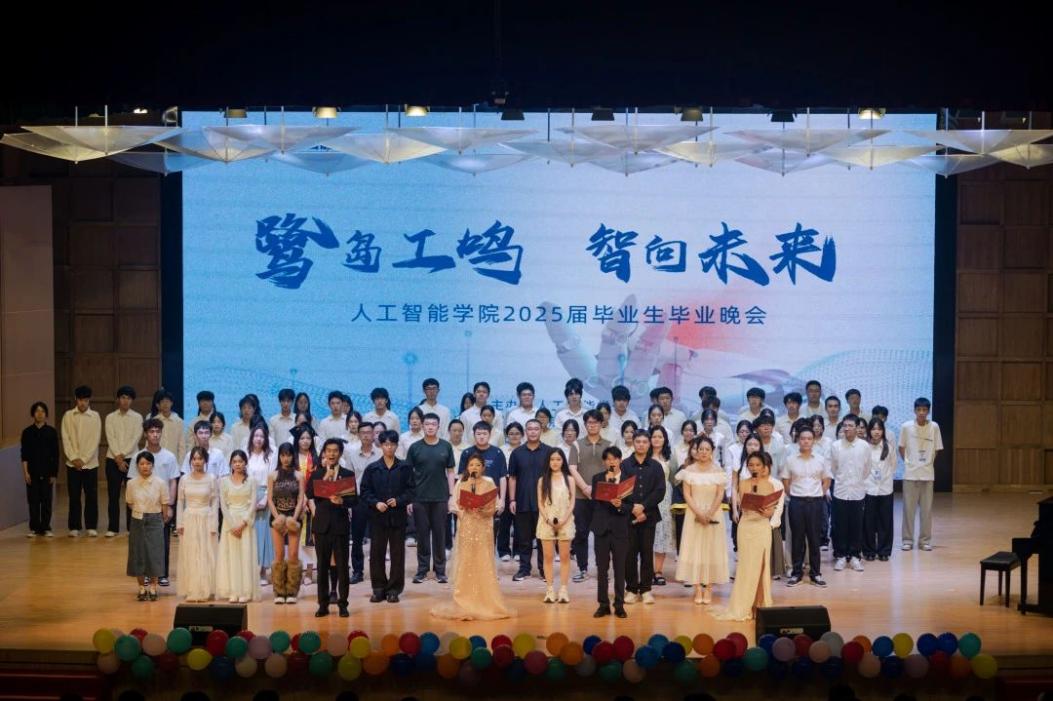"愿你们前程似锦,逐梦远航!" 随着主持人的祝福声,厦门工学院人工智能学院 "鹭岛工鸣・智向未来" 毕业生毕业晚会圆满落幕。全体演职人员与到场领导走上舞台合影留念,镜头定格下师生们笑容洋溢的瞬间。