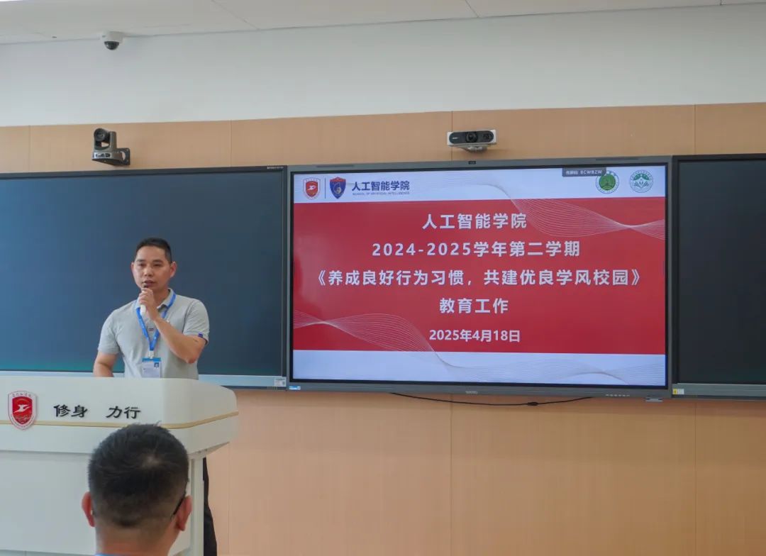 2025年4月18日中午12:10,为了培养学生良好行为习惯、营造优良校风学风班风、构建安全和谐校园环境。人工智能学院召开了2024-2025学年第二学期的学生干部教育工作会议,对学生日常行为规范、课堂纪律要求、课后习惯养成、校园管理规定等方面进行了深入探讨和全面部署。