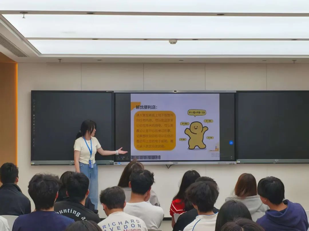 结尾由主持人黄宇彬总结此次非日常交流会的目的,并结合主题进行升华。接着成员们进行了解忧便利店的活动,并写下需要解答的困惑或分享的内容及想倾诉的情绪也可以通过3396034690@qq.com解忧便利店邮箱进行投稿。最后我们以一张合影来结束此次活动。