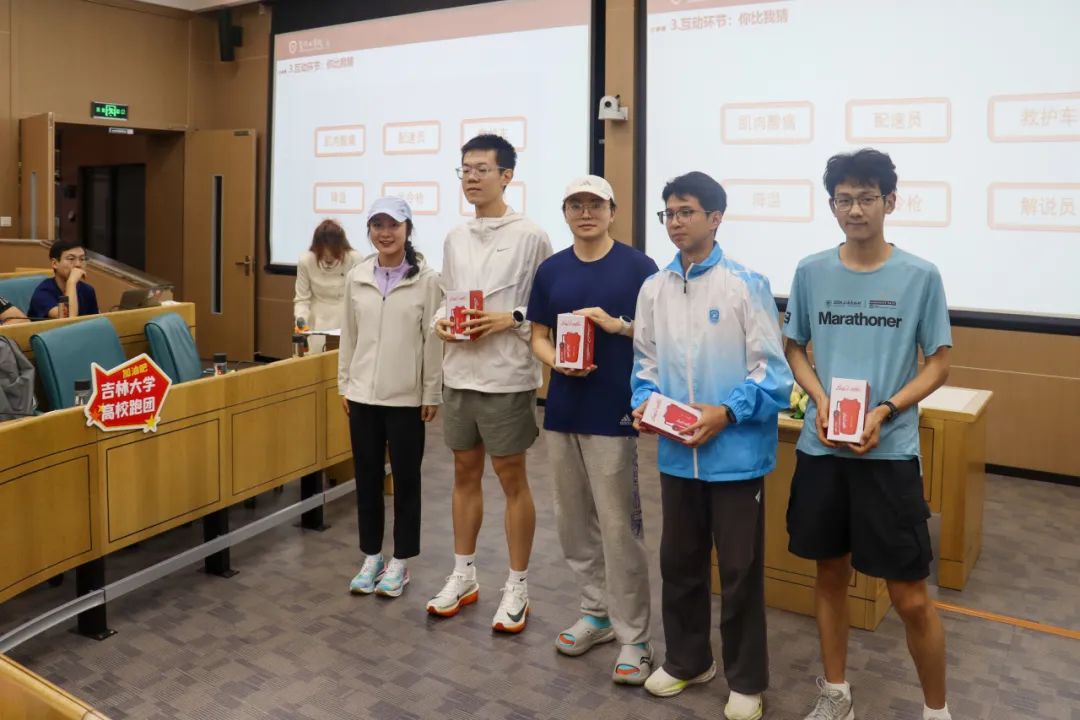 为了增进各大高校同学的友谊,此次活动特别准备了游戏环节,通过有关马拉松运动的知识竞赛与你比我猜的互动活动来让同学们更深刻地了解到马拉松体育文化,并由明星跑者徐冰洁、深圳校友会会长柴源分别为两支队伍颁奖。