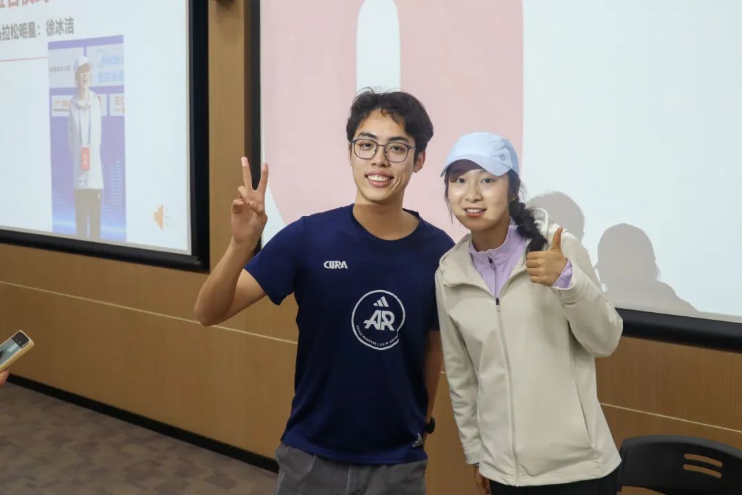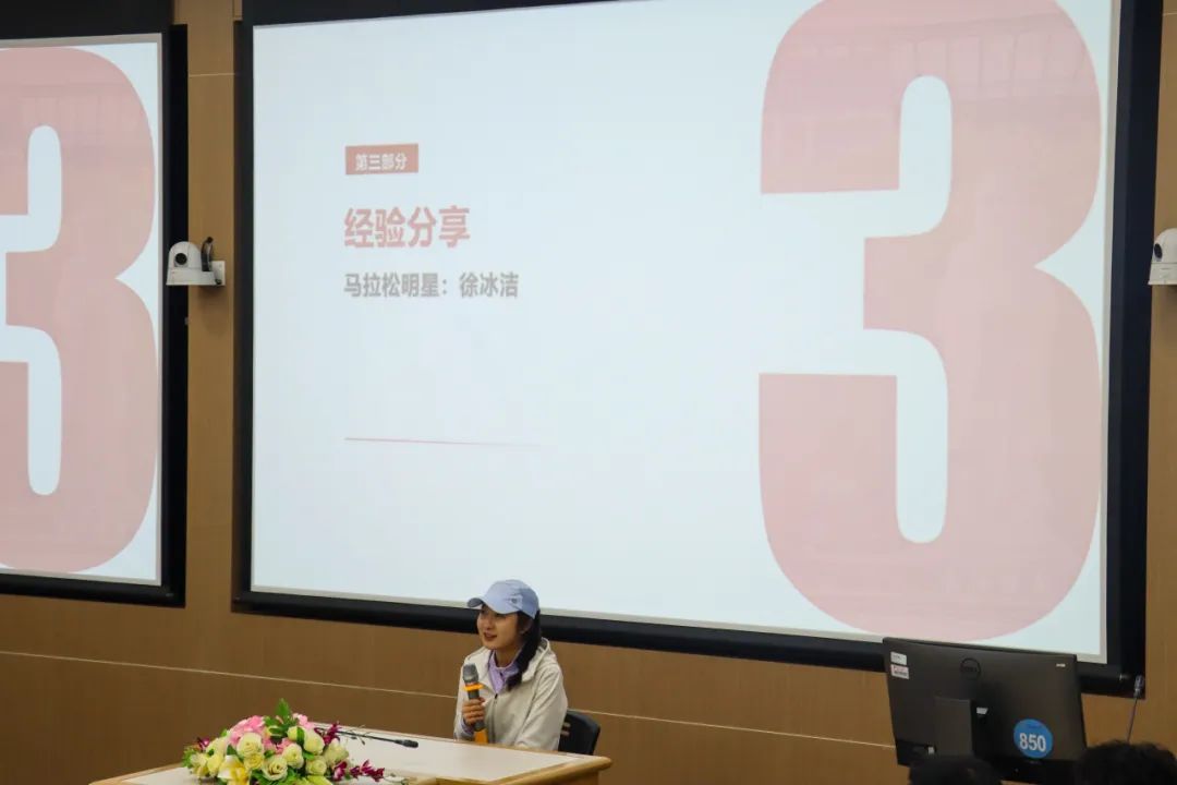 明星跑者徐冰洁细致地解答了现场同学们所提出的问题,并表示应以平稳的心态来面对迎面而来的挑战。不管是在生活中,还是在马拉松中,都要秉持着挑战自我、超越极限、坚韧不拔的精神。