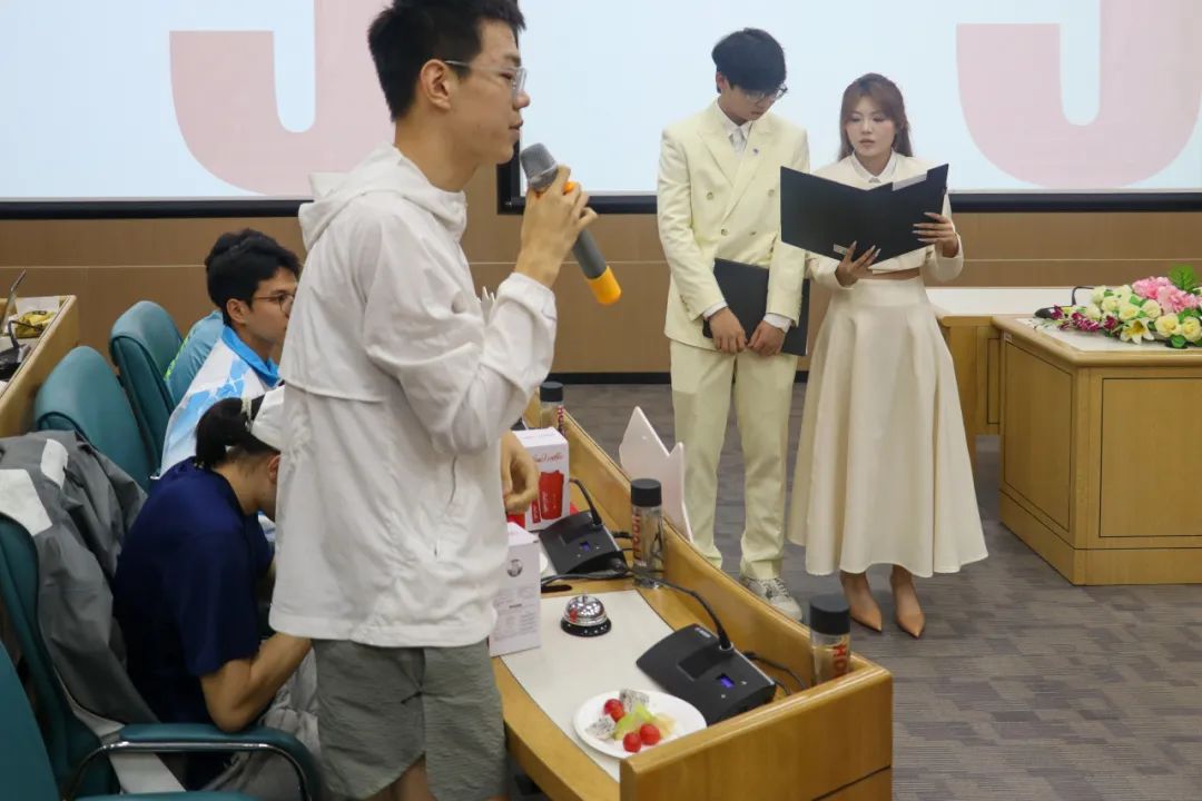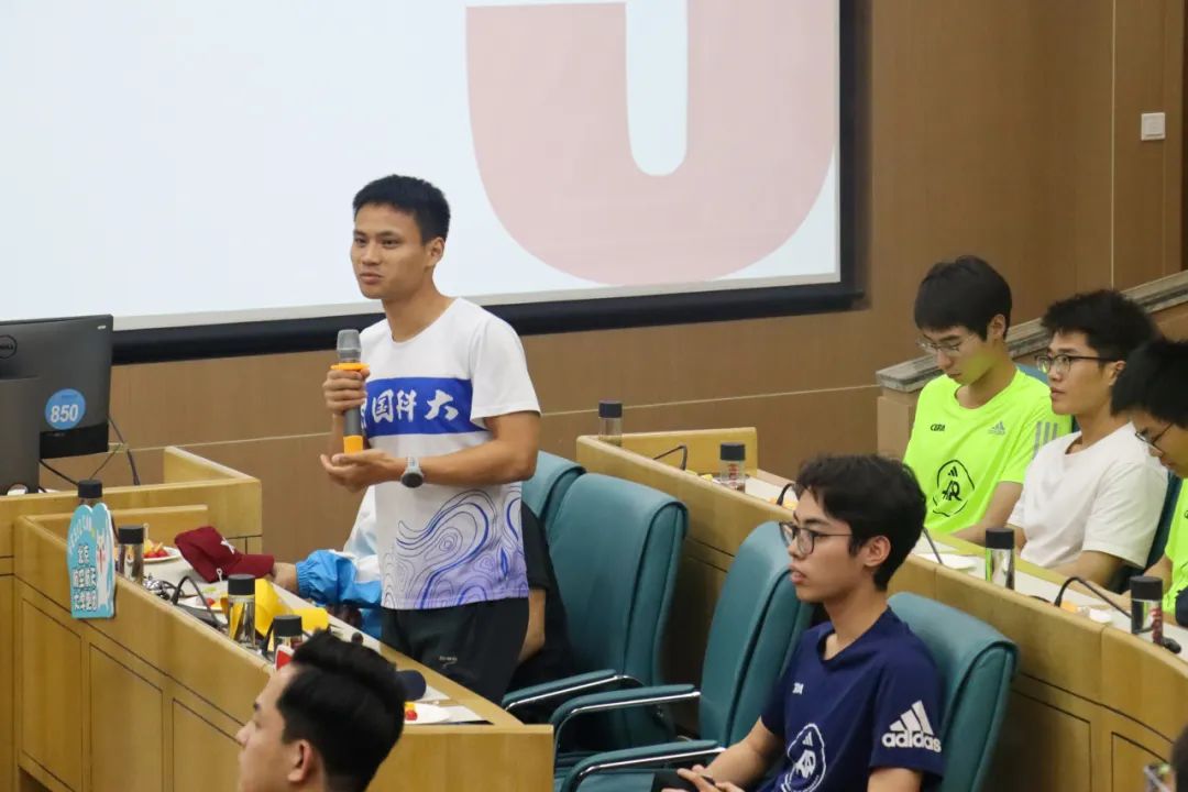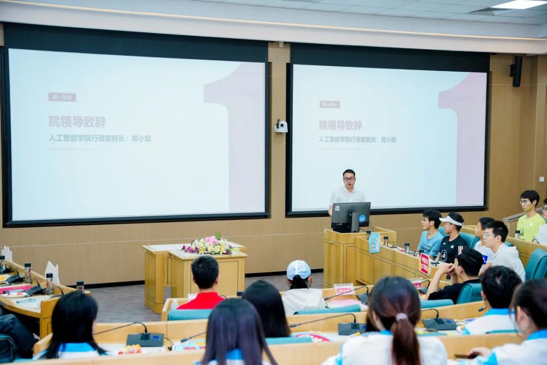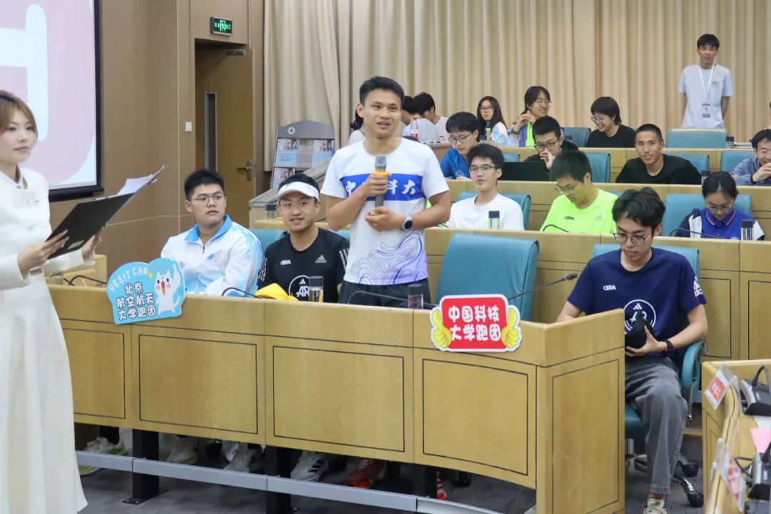 活动第一项环节由人工智能学院行政副院长郑小聪老师致辞。他代表学院全体师生向远道而来的明星跑者徐冰洁、中科大USTC长跑接力队、北京航空航天大学航行天下及吉林大学芝士雪豹中长跑队的跑团成员们,表示热烈的欢迎