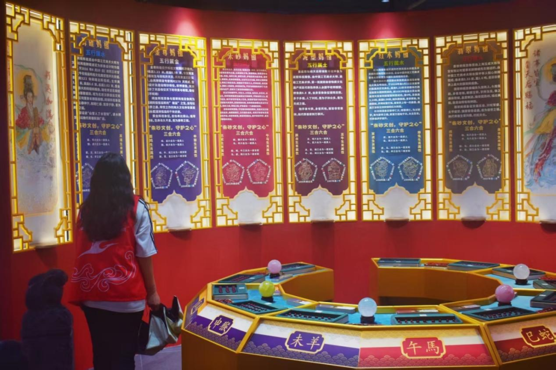 踏入展示区域,就像开启了一场穿越古今的文化盛宴。墙上关于 “五行妈祖” 的介绍展板整齐排列,东映妈祖五行属水,润泽万物,寓意着庇佑海上航行的平安顺遂;金尊妈祖五行属金,象征着坚不可摧的守护之力,驱邪避凶;朱砂妈祖五行属火,那炽热的力量,寓意着带来光明与希望,驱散黑暗;泥塑妈祖五行属土,承载着大地的包容与厚重,孕育生机;红木妈祖五行属木 ,展现出蓬勃的生命力,象征着生生不息。